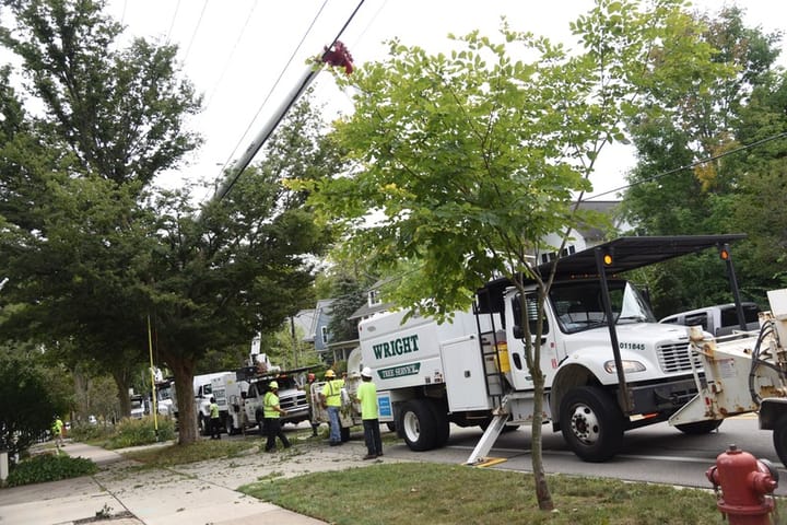 DTE crews were back on W. Jefferson in the Old West Side Saturday, taking chainsaws to the canopy along the power lines. Topped trees, V-shaped oddities with the middles carved out. Same fight MLive covered in 2021. DTE says aggressive cutting reduces outages. Ann Arbor says we're called Tree Town for a reason.