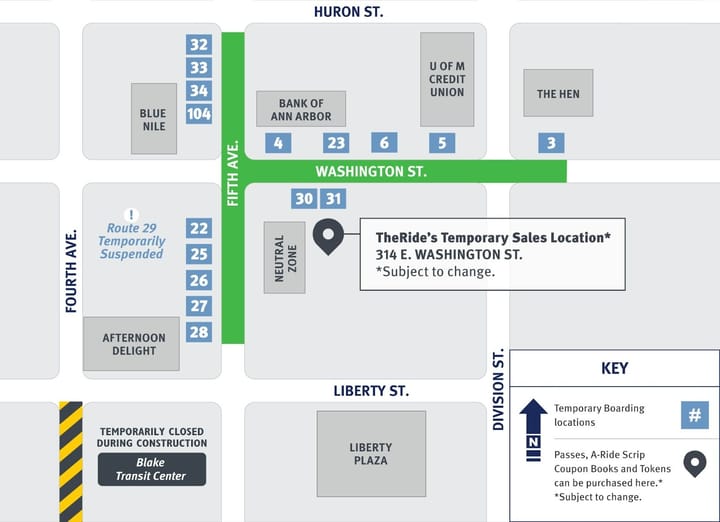 We told you last week about the 4th Ave. closure and bus stop moves starting May 3. Blake Transit Center's closed for construction. Routes move to 5th and Washington. Route 29's suspended. Route 26 picks up the slack.