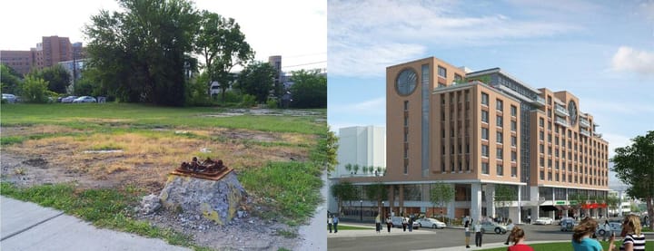 🛏 Vanguard Hotel: You know that weird empty lot next to Angelo's that's been vacant for almost a decade? Well, it's the future site of Ann Arbor's next luxury hotel, the Vanguard Hotel. Part of the Marriott's Autograph Collection, work on the Vanguard Hotel began in 2013, was approved by the city in 2017, was redesigned and reapproved in 2019, was stopped for a pandemic in 2020, but is now targeting a 2024 opening.