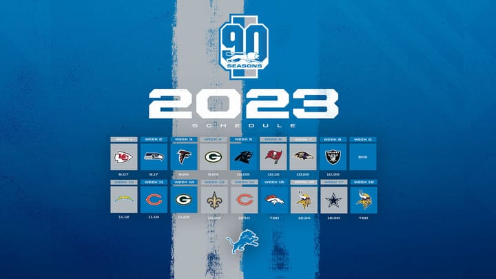 🏈 Lions 2023 Schedule: Last week, the 2023 NFL season schedules were released and the Lions were selected to play in five marquee games. In addition to their annual Thanksgiving Day game, the Lions will play in the season’s opening game and three other night games throughout the year. Expectations are high for the Lions this year as they’re predicted to have an 11-6 record and win their division.